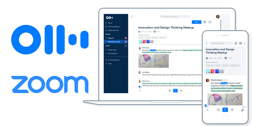 Zoom and Otter ai shown on a laptop and a phone