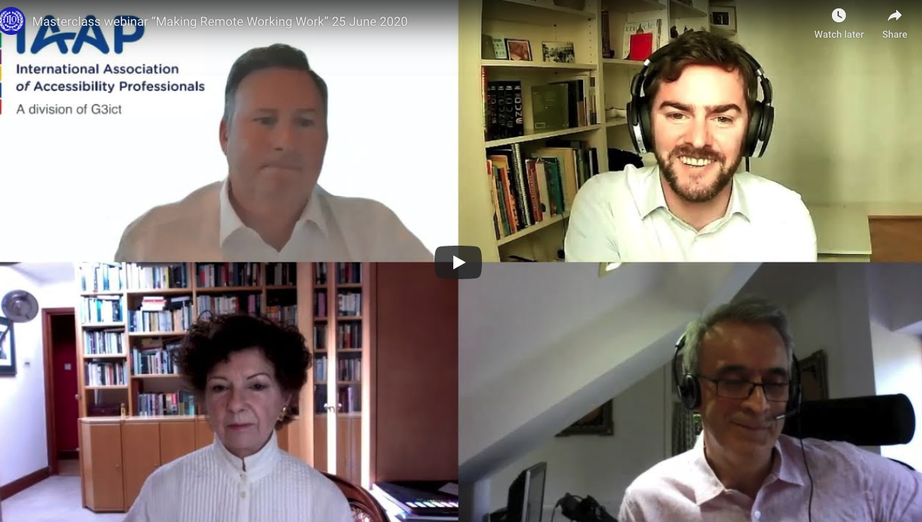 The masterclass webinar “Making Remote Working Work” addressed issues relevant for those responsible in multinational organisations for ensuring remote working liberates every employee’s productivity, while enhancing their well-being and engagement.Moderated by Susan Scott-Parker (CEO and Founder, business disability international), Nasser Siabi (CEO, Microlink) and Christopher Lee (Managing Director, International Association of Accessibility Professionals (IAAP)) discussed how remote working can be made inclusive and accessible for all.